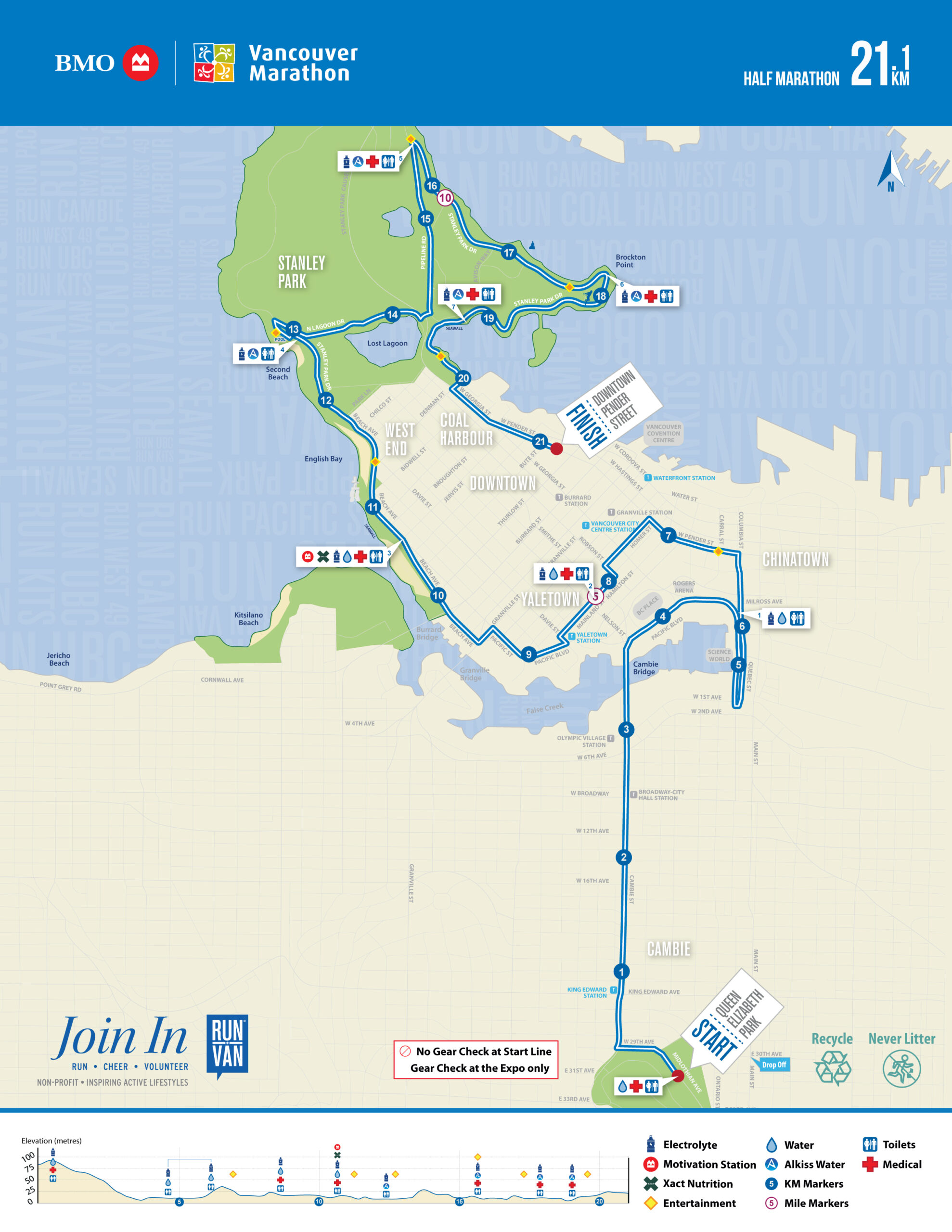 The BMO Vancouver Marathon features shoreline views and a stunning tour through twelve of the city’s most iconic neighbourhoods, while the fast Half Marathon kicks off with an epic downhill start overlooking Vancouver’s iconic city skyline. All courses offer stunning views of the Pacific Ocean, towering forests, iconic landmarks, and run through world-renowned Stanley Park towards an energized downtown Finish Line.