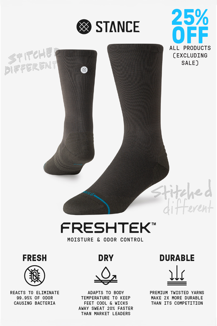 Step up your run with Stance. Premium performance socks built for comfort, endurance, and bold expression. On and off the course. 25% off All Products, excluding sales. No minimum purchase requirement. No usage limits. Can’t combine with other discounts. Active from today until January 15, 2026. Use discount code: RUNVAN25BMO